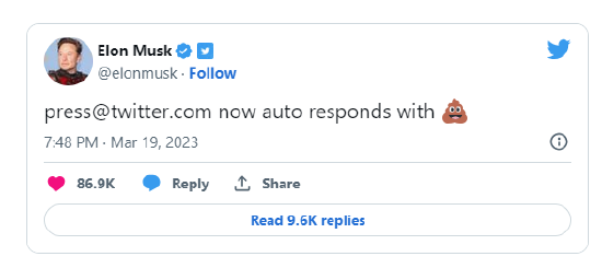 长期以来,马斯克一直直言不讳地表达自己对媒体的厌恶。他似乎也不太喜欢通讯部门。相反,他经常选择在推特上发布公告,并回应有关他或他的公司的消息。近三年前,马斯克领导的特斯拉解散了整个公关部门。