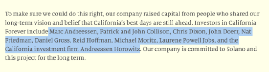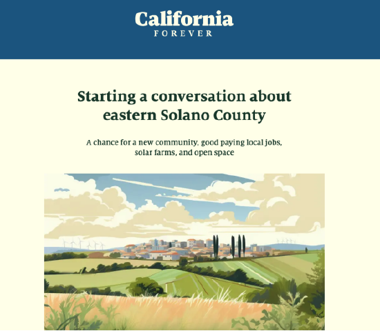 既然改变不了旧金山的堕落,那就另起炉灶再建一个全新的城市。从2018年开始,这些亿万富翁投资的Flannery公司就开始在索拉诺地区的Fairfield市,一块接一块地上门求购农业土地,无论对方是否计划出售。
