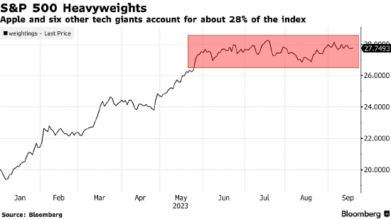 看涨的投资者认为,这些大型科技股将继续在人工智能领域占据主导地位,即使在不确定的宏观经济背景下,它们也会推动利润增长,并可能打开新的市场。在标准普尔500指数37万亿美元的总计市值中,这七大科技股目前的占比约为28%,高于年初的约20%。