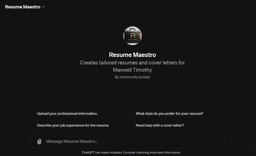 例如,Maxwell Timothy发开了一款名为“简历大师”的GPTs。他把自己以前写过的数十份简历放进系统,再添加网上的简历案例资源和自己的工作经历。这样,只需要输入招聘里的工作详情,“简历大师”可以在10秒钟之内生成一份可下载的PDF简历文档,里面包含所有的个人信息,并且按照工作要求来列举职业经历。“基本上和我自己写的差不多,仅需要很少修改,” Timothy表示。
