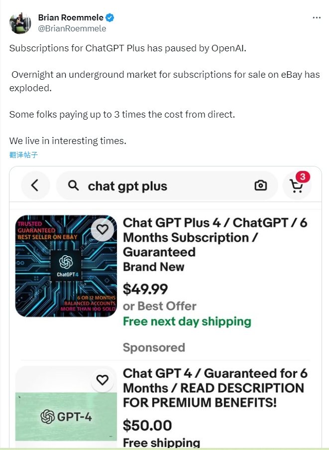 消息一出,不少已经拥有Plus账号的人表示庆幸,有人甚至开始在网上出售账号。