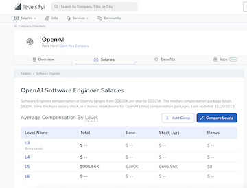根据美国科技公司数据收集网站Levels.fyi的数据,OpenAI软件工程师年薪中位数为92.5万美元,其中30万美元为基本工资,62.5万美元为股票补偿形式的薪酬。