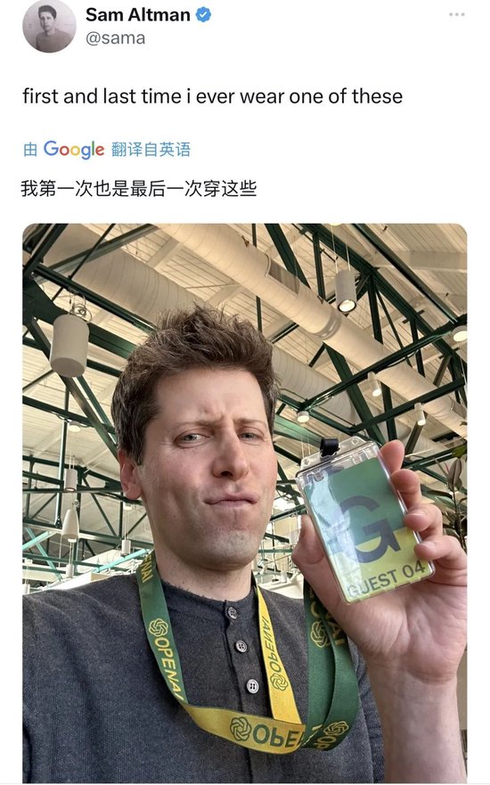被解雇两天后,山姆·奥特曼再次走进了自己无比熟悉的OpenAI大楼,只不过,这一次他的目的是谈判。在谈判开始之前,奥特曼在X上po出了自己带着访客证件的照片,并配文“这是我第一次也是最后一次佩戴它(指访客证件)”,这代表着两种可能性:要么回归,要么再也不见。对于他来说,这次谈判更像是对于OpenAI董事会的最后通牒。