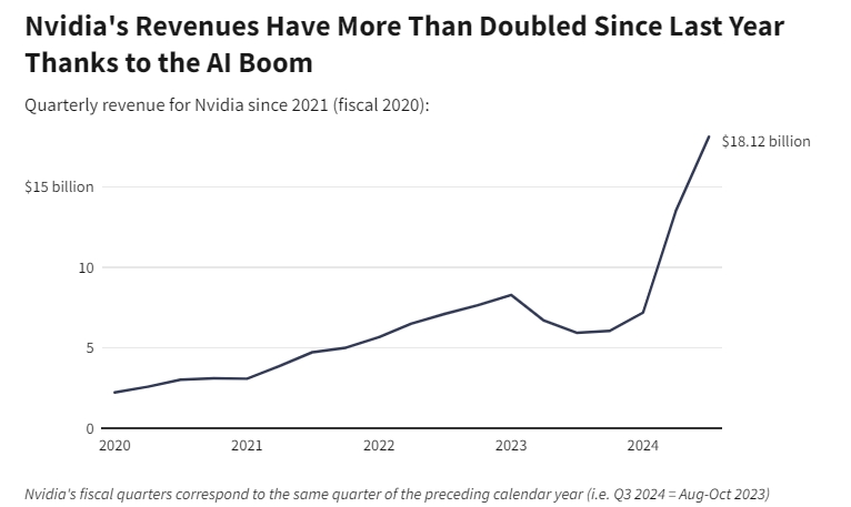 值得一提的是,英伟达的数据中心业务是提供云计算和人工智能等服务的关键。今年第三财季,英伟达数据中心营收达到创纪录的145.1亿美元,远远高于去年同期的38亿美元,也高于分析师预期的127亿美元