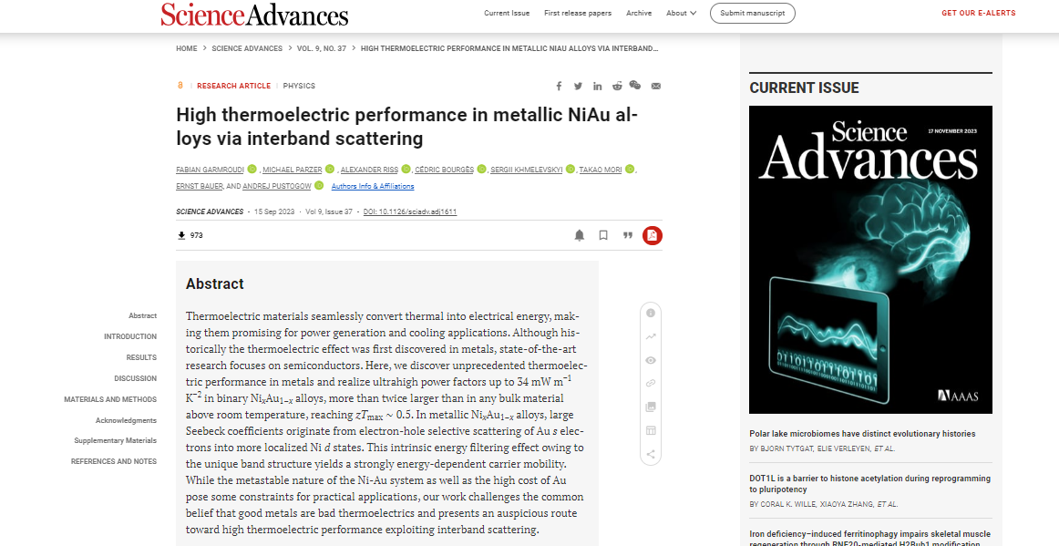 他们补充说,极高的导电性和塞贝克系数的结合,导致镍金合金的热电功率因数值创纪录,远远超过传统半导体。