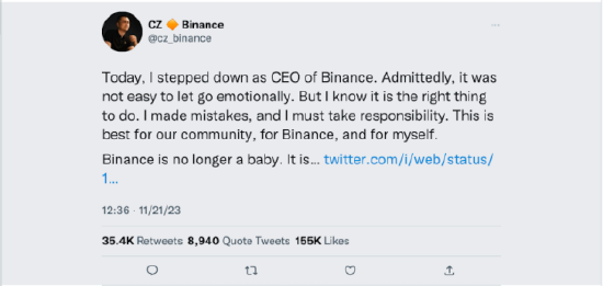 赵长鹏随后也在X(前推特平台)表示,自己犯了错误,必须承担责任。他又表示,自己期待从目前繁忙的工作日程安排中得到休息,计划在诸多加密货币项目进行一些被动投资,不会再运营创业公司。这或许意味着这位加密货币行业最重要的商界领袖可能就此退隐江湖。