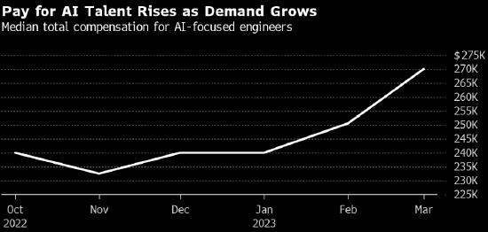 Sam Altman重新出任OpenAI首席执行官前,数百名员工因这位ChatGPT之父被解雇而扬言集体辞职,这突显了科技业最有价值的员工目前掌握的影响力。根据薪资数据平台Levels.fyi在5月发布的一项分析,人工智能工程师的薪资水准高于非人工智能同行8%至12.5%。