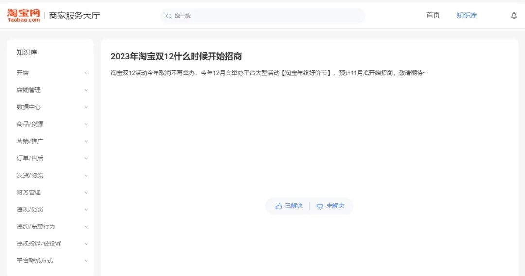 “双11”刚结束,“双12”不搞了?11月24日,“淘宝取消双12”登上微博热搜。另据淘宝商家服务大厅官网消息,淘宝“双12”活动今年取消不再举办,平台将举办“淘宝年终好价节”,预计11月底开始招商。