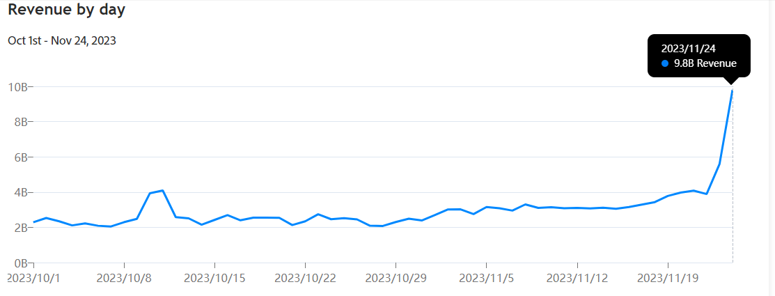 消费降级、通胀居高不下的背景下,商家为了吸引客户,只能靠实打实的降价。今年的美国“黑五”太疯狂了!Adobe Analytics报告称,“黑色星期五”当天,美国线上销售额同比增长7.5%,达到了创纪录的98亿美元(约合700亿元人民币)超过分析师预期,且比感恩节前一周增长了72%。