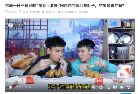 不过即便如此,网络上依然流传着“华莱士窜稀套餐”“华莱士喷射战士”的热梗,甚至还掀起过互联网上的挑战潮,消费者争先恐后地涌入华莱士门店体验“窜稀套餐”并分享自己的感受。