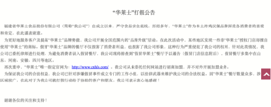 新浪科技在网站上搜索到了不少华莱士的加盟广告,但华莱士的官方微博和网站都表明,自己从未开放加盟。