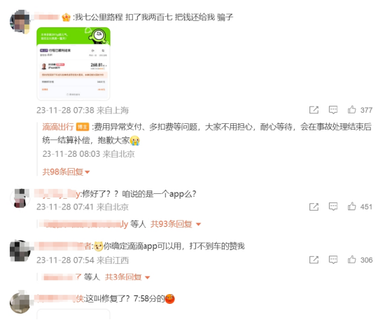 值得注意的是,在滴滴App服务无法使用之下,不少用户表示开始转向其它打车App。“非常无语,滴滴一早崩了,还好直接用了美团没有迟到”,“我说早上怎么都打不到车,还得是高德救命”。