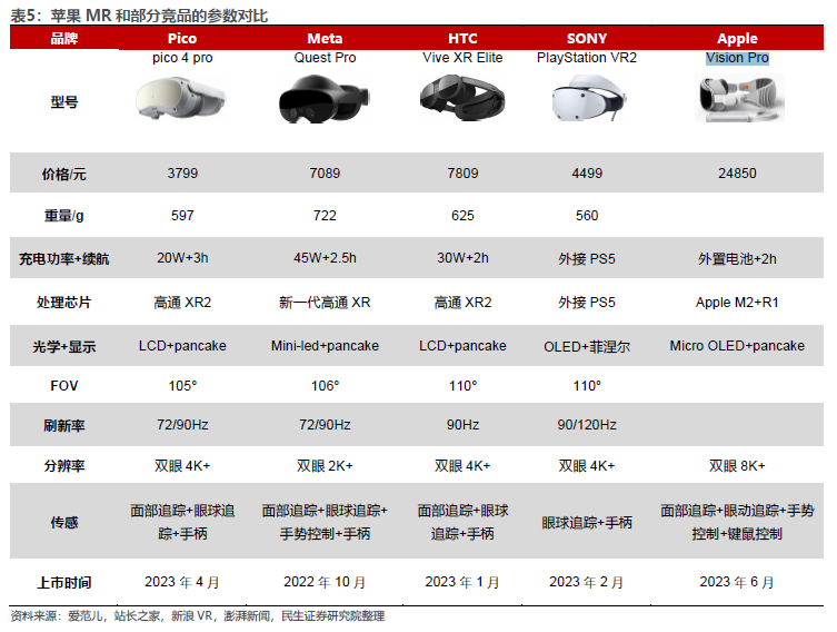 方竞等人表示,苹果Vision Pro在硬件配置和功能实现上远超竞品。Vision Pro 此番搭载的IPD调节显著改善屈光度和成像质量,远期有望成为行业主流。交互方式上,其搭载12个摄像头+5个传感器+6个麦克风,用户只需简单的注视app后用手势交互,重新定义交互范式,有望引领后续交互领域创新。此外,眼动追踪技术能大幅提升交互体验,使得应用从B端走向C端。
