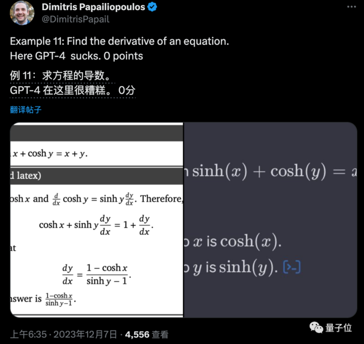 把Gemini发布时展示的原题发给GPT-4对比,结果14道题中,GPT-4约获得12分。