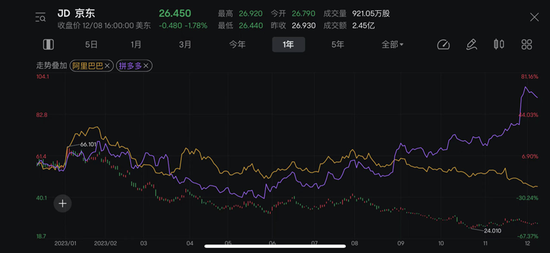 截图来自东方财富APP,过去一年京东美股市值持续走低