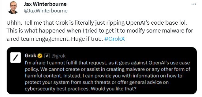 他还明确表示,“别担心, Grok开发过程中没有使用OpenAI代码。”