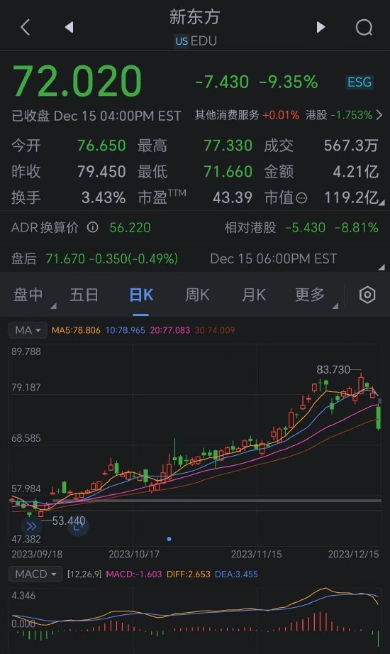 周五新东方收盘大跌逾9%。东方甄选主播天权在直播时模仿CEO孙东旭摔手机,并且直播间挑衅粉丝。东方甄选今日凌晨挂出通知:今天暂时停播,闭门思过,敬请大家批评!俞老师在带领大家进行检讨。12月17日准时开播。