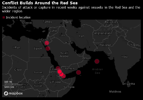 上周晚些时候,大约一天的时间里三艘集装箱船遭到袭击,促使包括马士基在内的前三大船东宣布计划远离该水域。 周一德国集装箱运输公司Hapag-Lloyd AG表示,将派几艘船绕道南非而不是经过苏伊士运河。一位发言人说,这种情况会持续到该运河和红海再次安全为止。