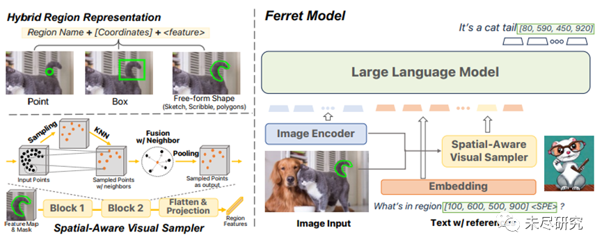 “雪貂”模型架构 (来源:FERRET: REFER AND GROUND ANYTHING ANYWHERE AT ANY GRANULARITY )