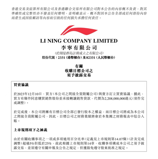 近日,李宁披露集团全资子公司High Match Limited以22.08亿港元欲收购目标公司Vansittart Investment Limited,并对媒体表示,集团在香港设立总部,标志着国际化进程的加速。消息发布的次日早间,李宁股价大幅跳水,盘中一度大跌超过16%,最终收盘价格为18.3港元/股,跌幅14.29%。据证券时报数据,李宁股价从最高约81港元/股断崖式下跌,累计已跌超77%。