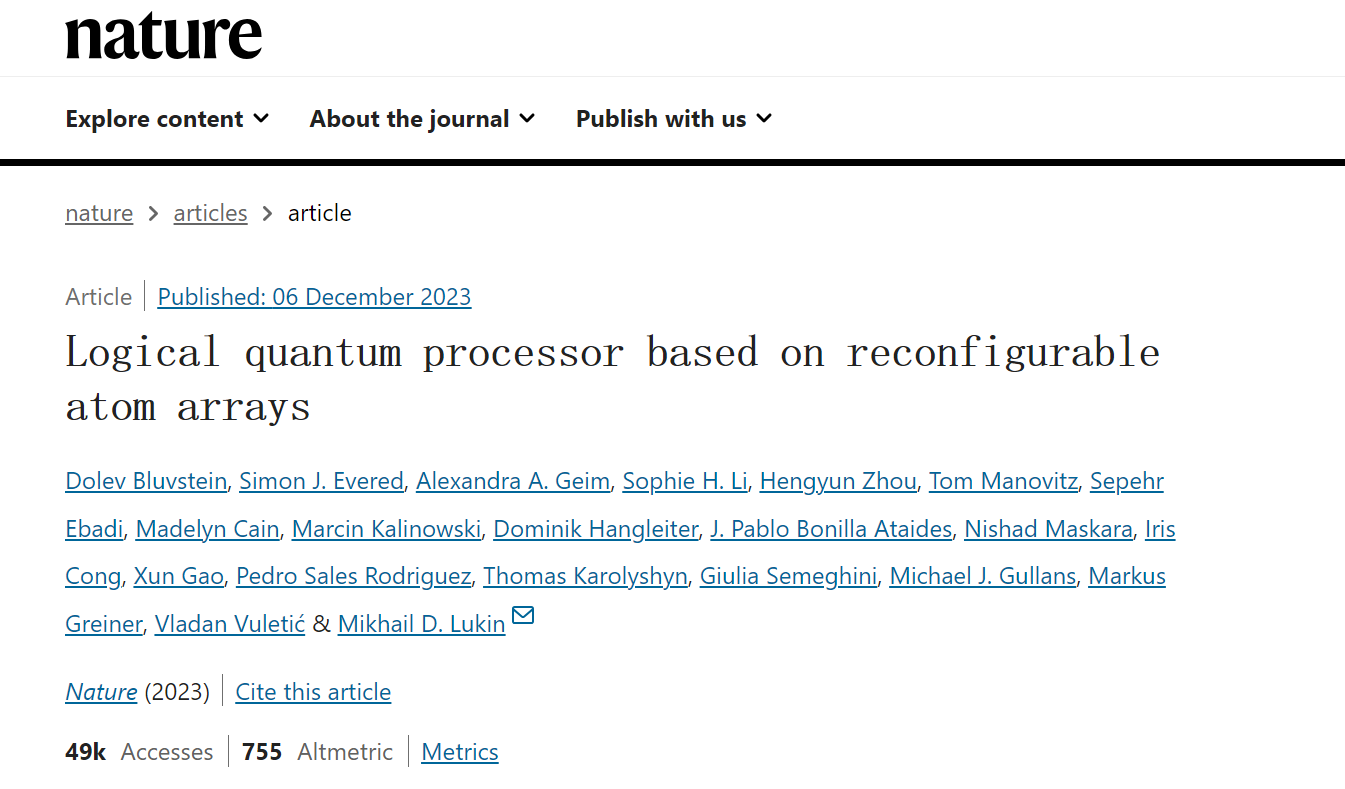 这一突破建立在多年来对一种称为中性原子阵列的量子计算架构的研究之上,该架构也是在哈佛大学的实验室中首创的。最新研究成果已于近期发表在了《自然》杂志上。