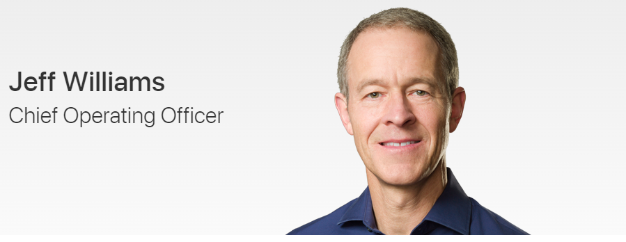 最后一位重磅人选就是苹果现任的首席运营官杰夫·威廉姆斯(Jeff Williams),他负责苹果的整个供应链和运营,从制造、零部件采购到技术支持。考虑到iPhone等硬件产品每年的出货量,威廉姆斯在公司的重要程度不言而喻。