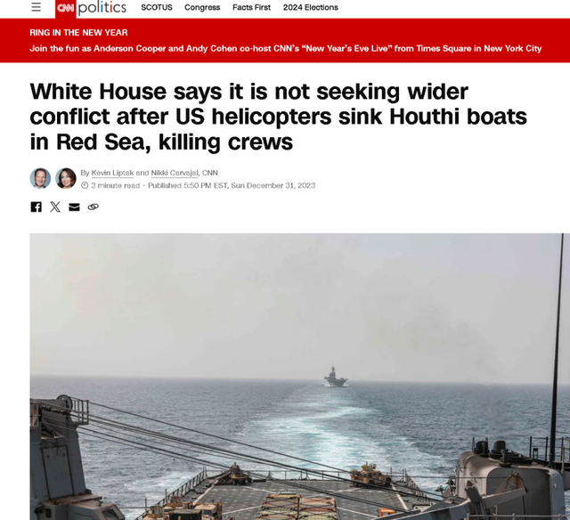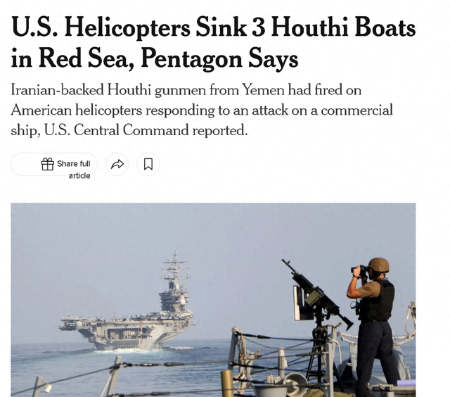 但此事当即引起了国际舆论的广泛关注,因为根据美国《纽约时报》的说法,这是自2023年10月巴以新一轮冲突爆发以来,在红海地区巡航的美军首次与也门胡塞武装交火并直接击毙其人员。但此前美国拜登政府曾表示,美国不希望与也门胡塞武装直接交火,以免令中东的事态进一步恶化。