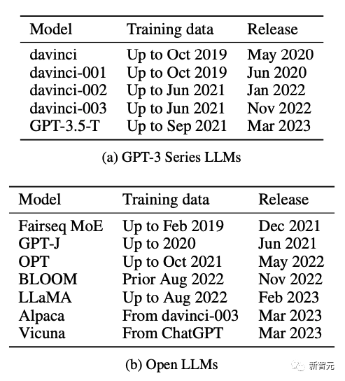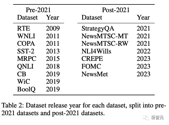 针对这些模型,他们选取了两组刚好卡在模型训练时间前后的数据集进行了测试。
