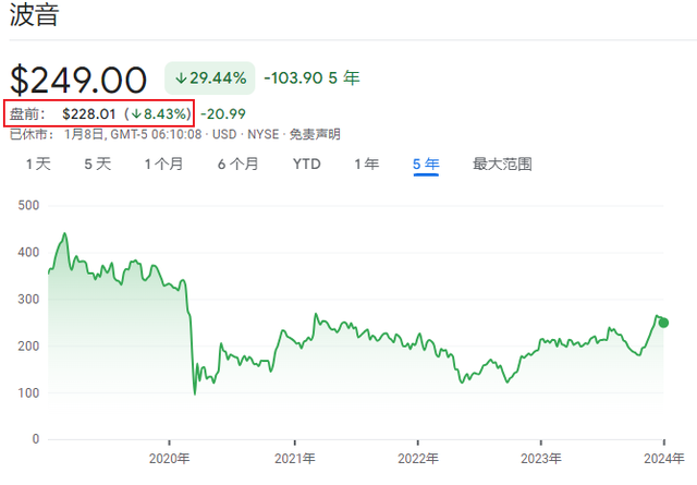 该事故再次将波音推到舆论的风口浪尖,波音股价在德国市场大跌7.5%,美股盘前跌超8%,波音最大供应商Spirit AeroSystems美股盘前跌超16%。