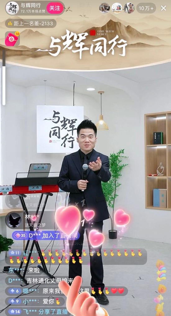 随后,盼盼、董董、鹏鹏等七位主播依次出场表演才艺。晚间8时许,俞敏洪也出现在直播间,和董宇辉合体直播。据俞敏洪透露,“与辉同行”正在规划国际相关业务,其团队成员已有70多人。