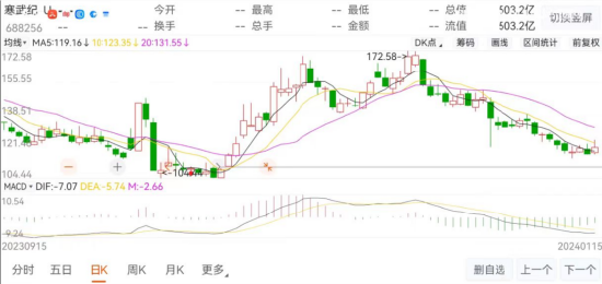 距离2023年4月份公司股价最高271.47元每股,目前寒武纪股价已下跌超过55.47%,市值腰斩。股价大起大落的同时,2023年以来,寒武纪公司逐季营收持续同比下滑——前三季度,公司营收1.45亿元,同比下滑44.84%;同期亏损累计8.08亿元。