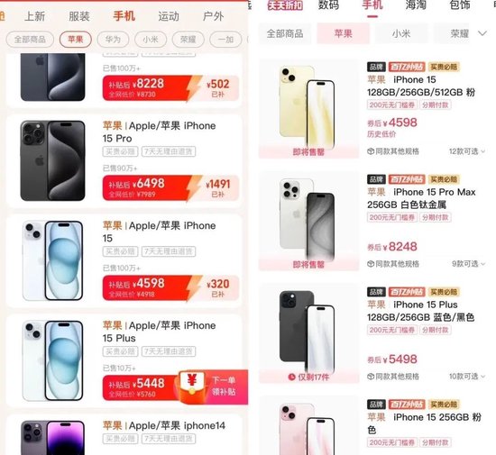 就在这次苹果官网调价以后,“市界”查询各大电商平台发现,截至发稿,iPhone15标准版起售价已经下探至4598元,iPhone15 Plus下探至5448元,iPhone 15 Pro下探至6498元,iPhone 15 Pro Max下探至8228元。