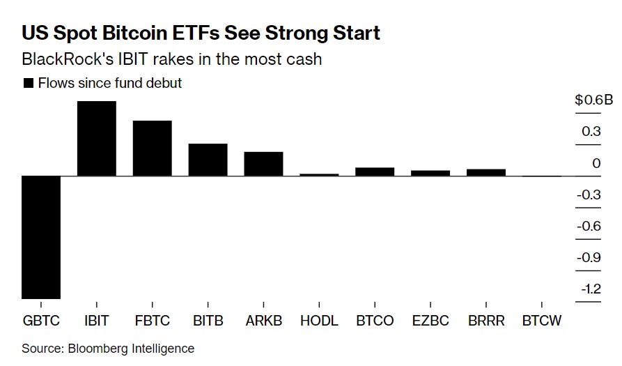 美国比特币现货ETF开局强劲——贝莱德旗下的IBIT获利最多