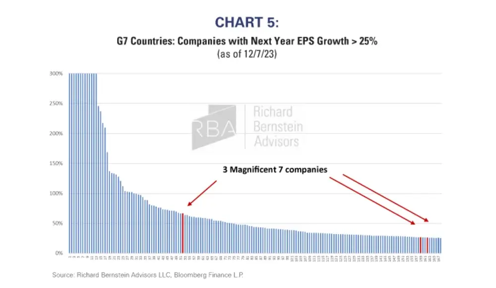 RBA在最近的一份报告中表示,在苹果、微软、Alphabet、亚马逊、英伟达、特斯拉和Meta平台这七大巨头中,预计只有三家公司在2024年的盈利增长将超过25%。