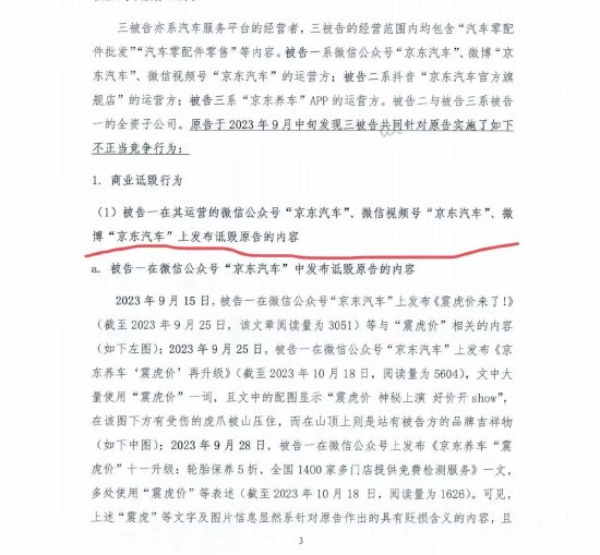 被告一系微信公众号“京东汽车”、微博“京东汽车”、微信视频号“京东汽车”的运营方;被告二系抖音“京东汽车官方旗舰店”的运营方;被告三系“京东养车”App的运营方。