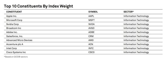 (苹果、微软也是标普500信息科技指数中权重最高的两家)