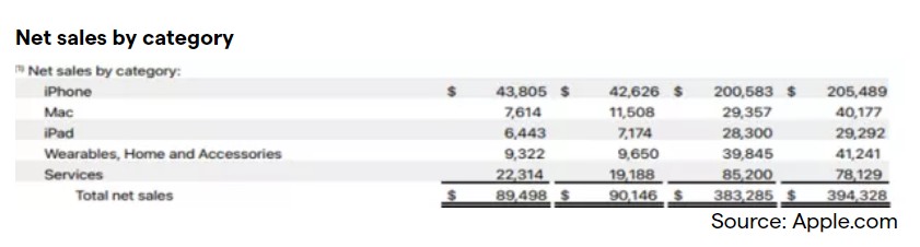 包括AirPods和Apple Watch在内的可穿戴设备部分同比下降了3%以上。