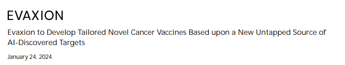 Evaxion称,随着外界对这一突破性治疗概念的高度关注,公司已启动临床前相关研究活动,目标是在2024年下半年之前生成概念性验证数据。新闻稿还提到,Evaxion已经在美国血液学会(ASH)年会上介绍了关于这些令人兴奋的机会的最新见解。