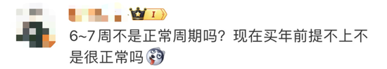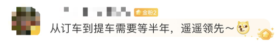 关于延期交付的问题,有网友认为“6、7周不是正常周期吗?”也有人戏谑称“从订车到提车等半年,遥遥领先。”