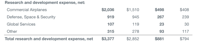 据财报显示,去年波音整体研发费用为33.77亿美元,同比增超2.8倍。商业飞机业务去年该费用为20.36亿美元,同比增长34.83%,占比超六成。