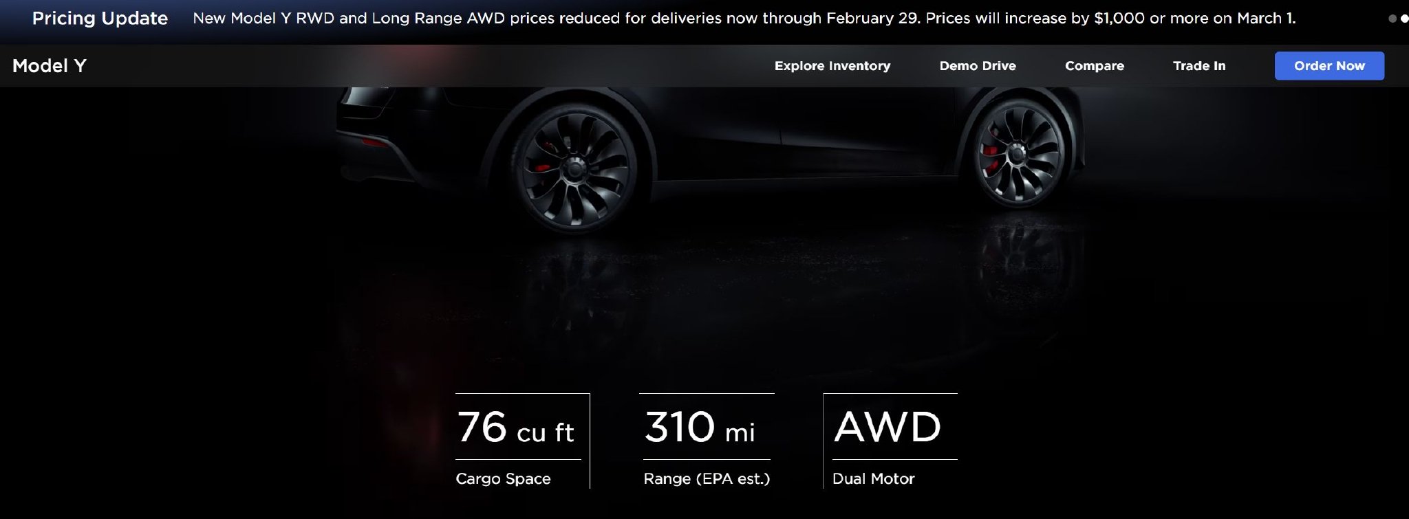 据特斯拉美国网站,该公司将Model Y后轮驱动款(RWD)和长航程全轮驱动(AWD)涨价至少1000美元,3月1日生效。2月5日,据特斯拉美国网站,该公司将长航程Model 3提价至46990美元,原价45990美元,涨价1000美元。