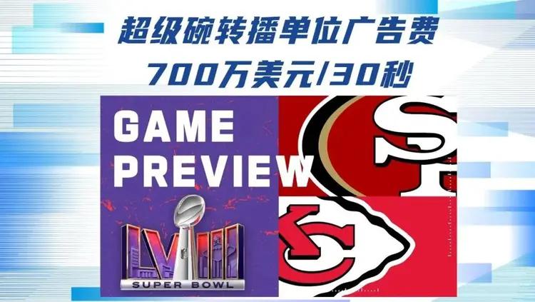 数据显示,过去20年一条30秒的超级碗广告价格暴涨了192%,今年一条30秒的超级碗广告价格冲到了700万美元,去年超级碗的总广告时间为38分45秒,大家可以算算得值多少钱?