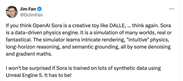 Jim Fan感叹:Sora是一个数据驱动的物理引擎