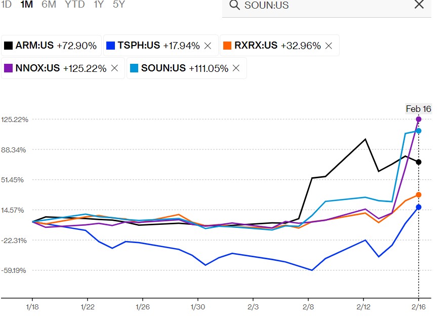 近期火爆美股的“英伟达炒股板块”吸引全球大批资金涌入,该板块之一的SoundHound AI(SOUN.US)上周暴涨近79%,Arm股价则三天实现翻倍。华尔街知名投资机构Wedbush Securities近日表示,AI芯片巨头英伟达宣布已对几家人工智能相关科技公司进行战略投资,其中包括近期股价暴涨的专注于语音领域的人工智能识别公司SoundHound AI,而这些投资可能仅仅是这家市值超万亿美元的芯片巨头AI投资宏图的最开端。