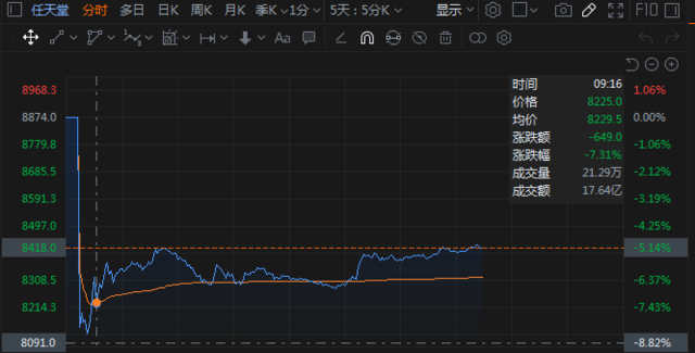 据报道,任天堂表示Switch 2的发布时点将从今年四季度推迟到2025年年初,有消息称最早也要到明年3月。2月19日周一,日股市场上,索尼和任天堂双双下跌,带动游戏板块集体走弱。任天堂盘中跌8.8%,创2021年10月以来最大的盘中跌幅;索尼延续上周跌势,早盘一度跌约1%。