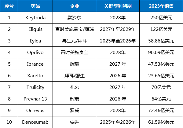 表1 未来5年,关键专利到期的10款重磅炸弹药物