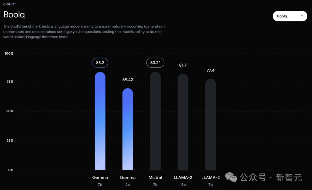 相比之下,Gemma 7B在Boolq测试中,只与Mistral 7B打了个平手。
