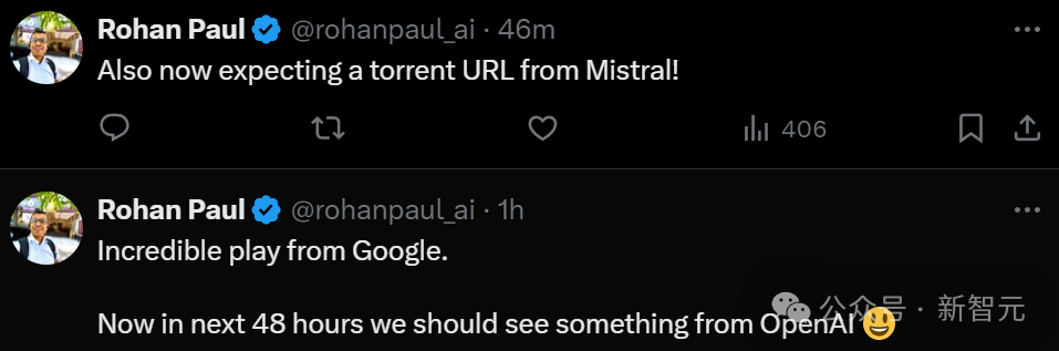 网友们也是看热闹不嫌事大,召唤Mistral AI和OpenAI今晚赶快来点大动作,别让谷歌真的抢了头条。(手动狗头)