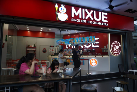 吉隆坡市内茨厂街左近有两家相距不远的蜜雪冰城,整体装饰风格也还是我们熟悉的红白色系。店内面积比国内更宽松,能摆下8-10张小型桌面,但大多顾客还是选择取餐后带走,而非在店内久坐。