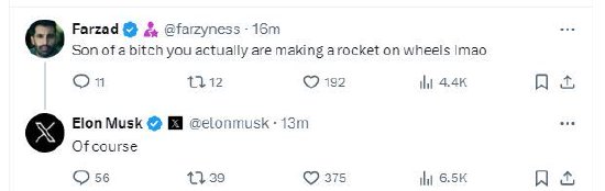 另一位用户评论称:“天哪,你们真的是在造有轮子的火箭。”